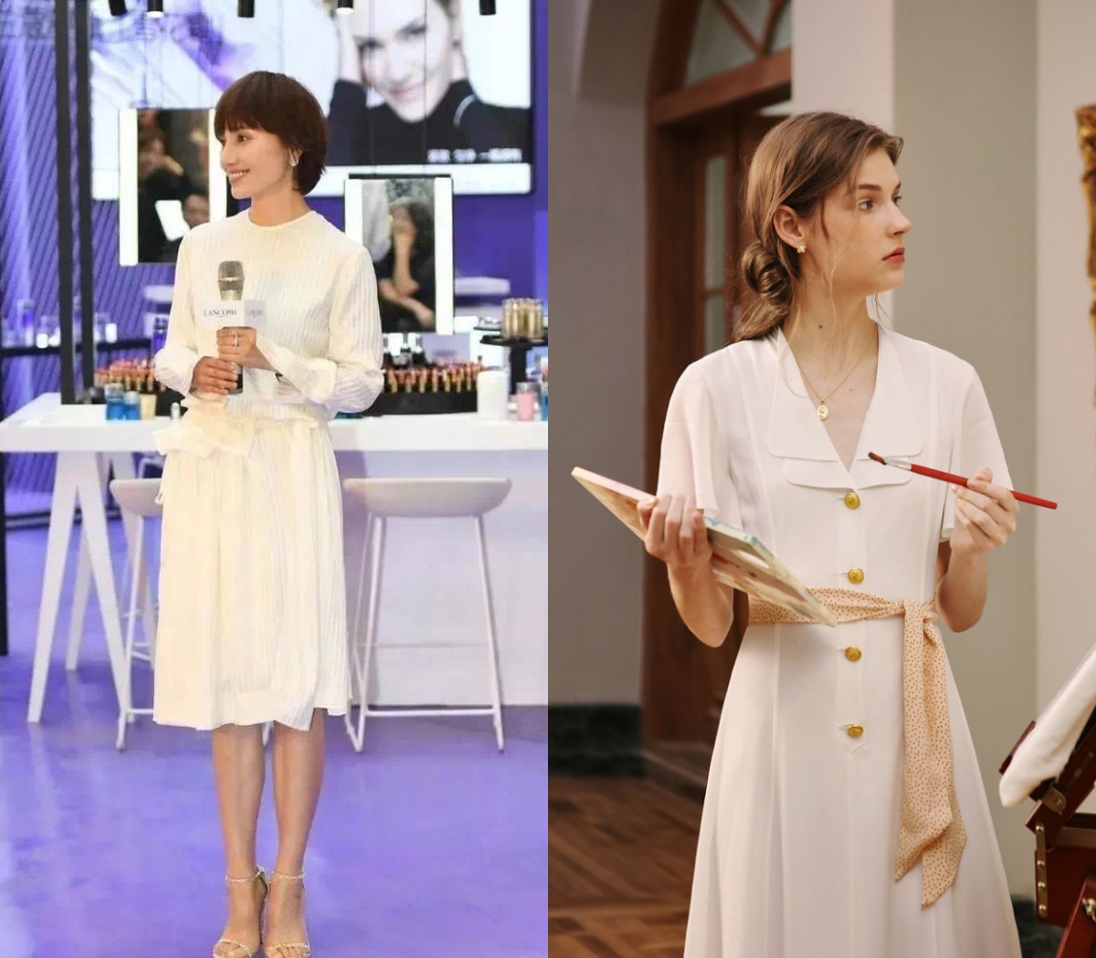 而相比白色裤子,白色连衣裙在我们身上的占比更大,没有其他颜色搭配调和的情况下,对肤色的影响和映衬也更直接了。