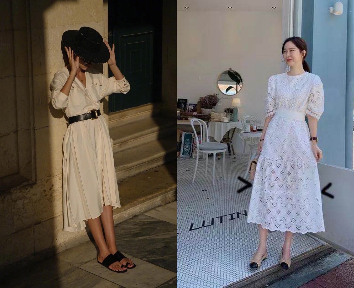 但白色连衣裙的好处在于,它就像一张白纸,其实风格没有那么强烈,借助不同的鞋包首饰,就可以给穿搭制造出更多的可能性,很值得尝试。